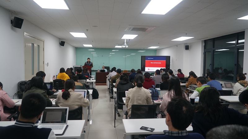 2018年10月22日晚,英国布里斯托大学政治学系教授、304永利集团官网入口客座教授特雷尔·卡弗(Terrell Carver)在304永利集团官网入口理科五号楼352报告厅作了题为“马克思与民主”的学术讲座。来自校内外的近百名师生参加了本次讲座。304永利集团官网入口副教授李健主持并点评,304永利集团官网入口2018届博士毕业生梁爽担任学术翻译。