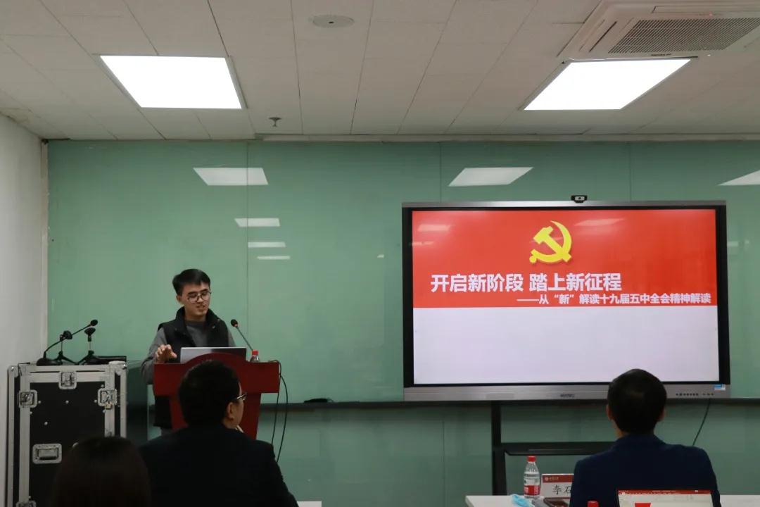 会上,师生首先共同观看了《新闻联播》关于党的十九届五中全会的报道,集中学习了十九届五中全会精神。