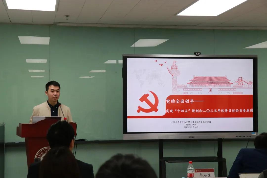 接着,首都五所高校学生理论社团的代表依次进行“学习十九届五中全会精神”主题宣讲。